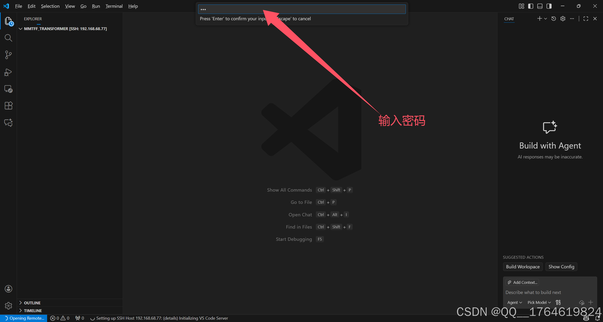 在Windows系统终端直接通过ssh连接Ubuntu系统,先输入要远程的系统的ip: