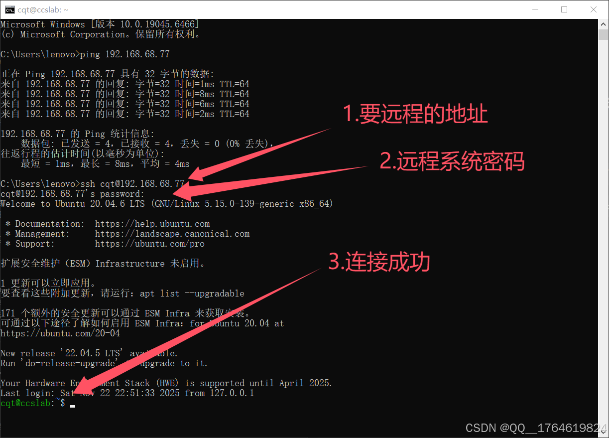 ssh cqt@192.168.68.77