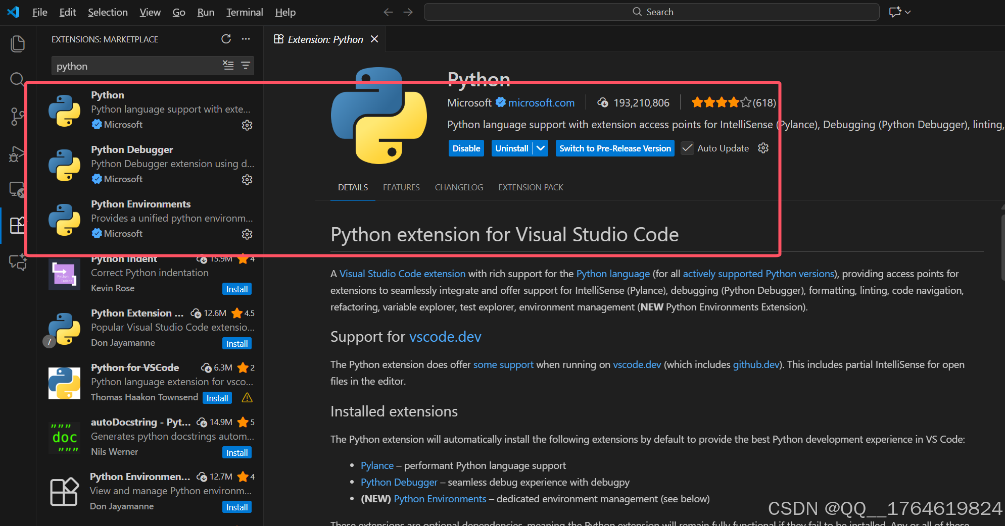在扩展中搜索python并安装