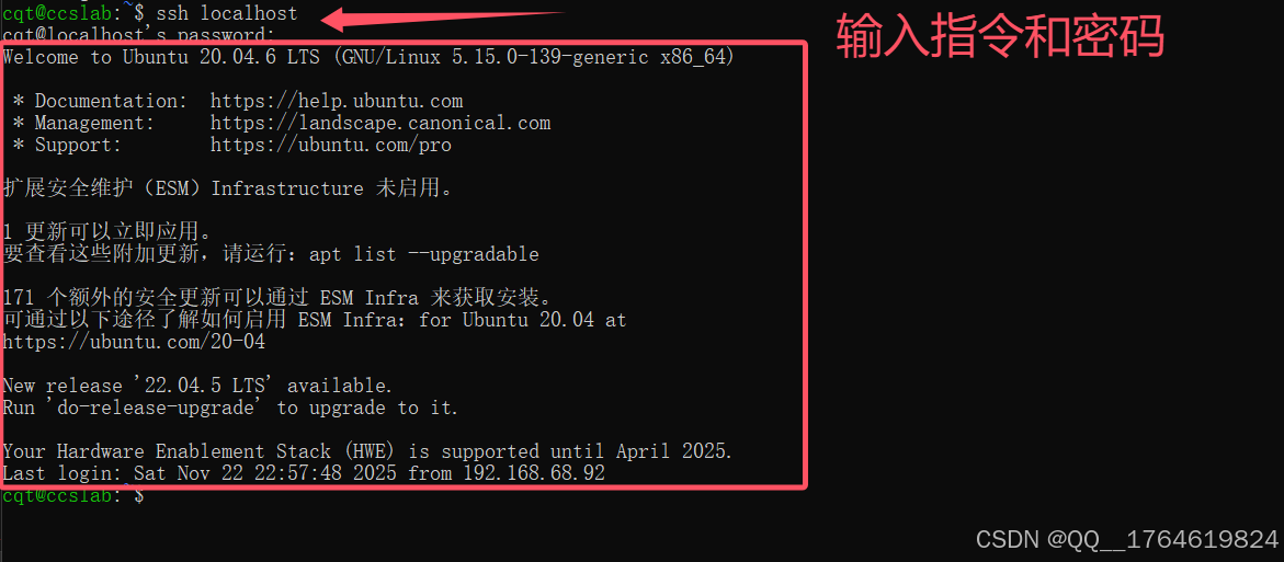 ssh 用户名@ip地址