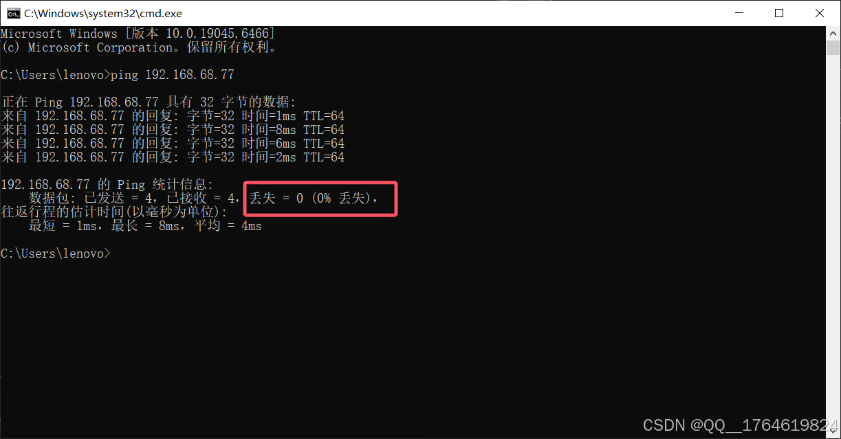 若显示%0丢失表示两个系统在同一网络中。