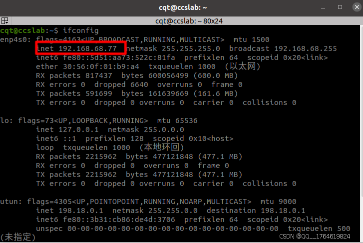Ubuntu系统的ip地址为: