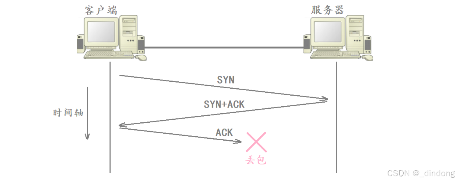 首先我们需要知道,连接建立不是百分之百能成功的,通信双方在进行三次握手时,其中前两次握手能够保证被对方收到,因为前两次握手都有对应的下一次握手对其进行响应,但第三次握手是没有对应的响应报文的,如果第三次握手时客户端发送的ACK报文丢失了,那么连接建立就会失败。