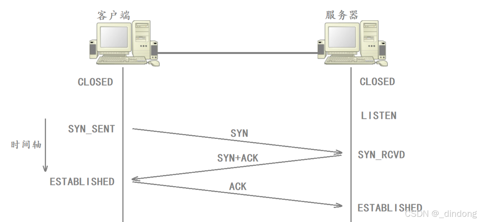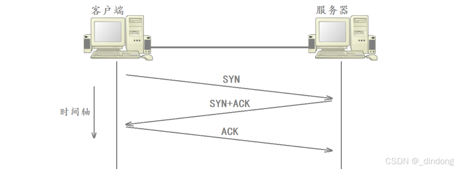 以服务器和客户端为例,当客户端想要与服务器进行通信时,需要先与服务器建立连接,此时客户端作为主动方会先向服务器发送连接建立请求,然后双方TCP在底层会自动进行三次握手。