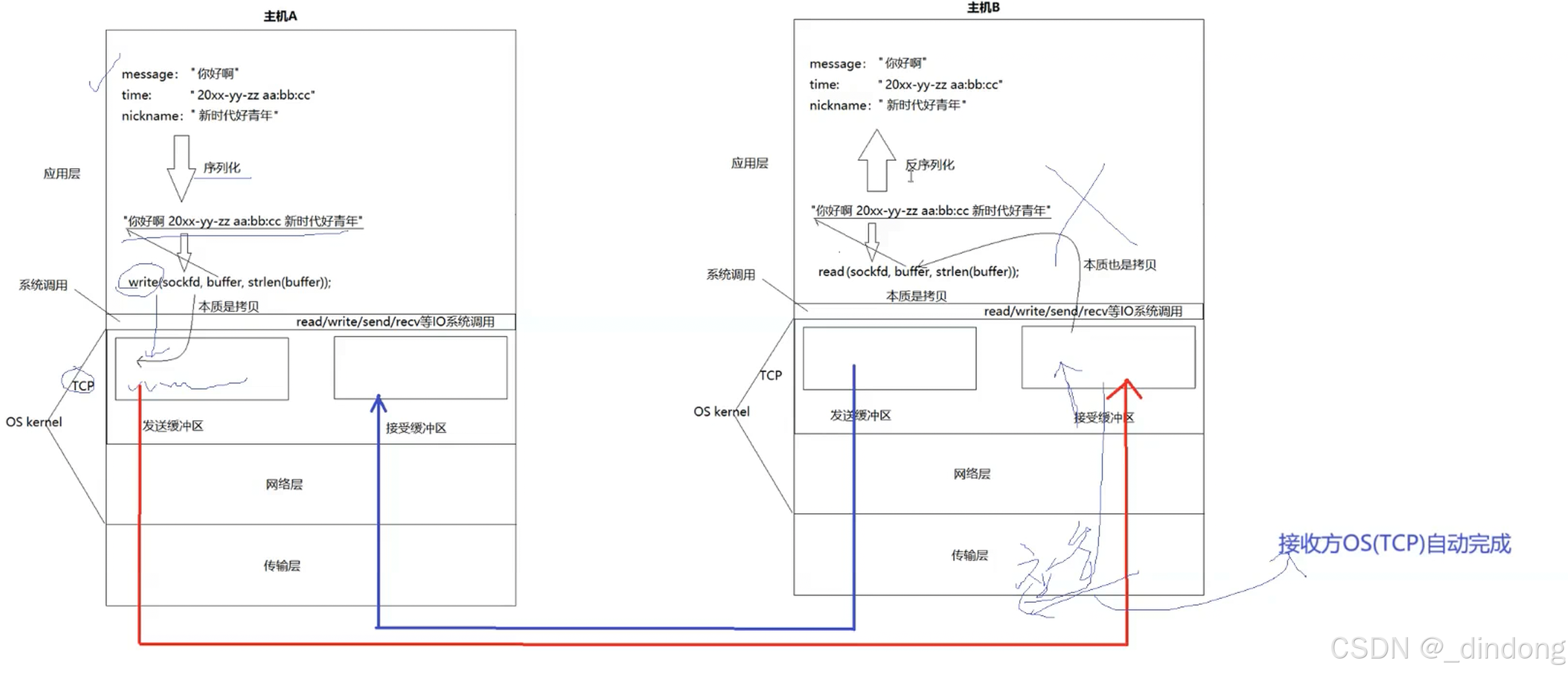 ps:发送方的消息发送到网络,接收方接收到信息一直到接受缓冲区后,接收方的OS会自动完成应答,这些通信细节全部在应用层之下进行,上层应用也就是客户是感知不到的。